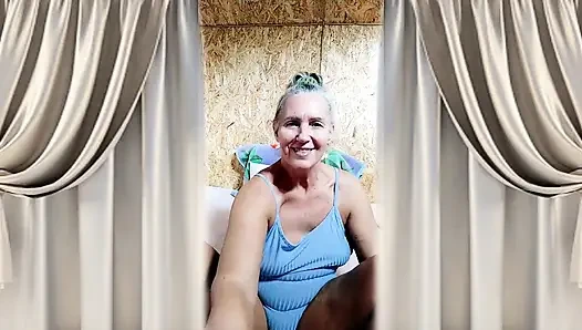 Горячая домохозяйка Лукерия занята развлечением на большой кровати.